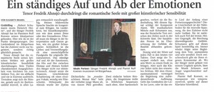Der lyrische Tenor Fredrik Ahnsjö ist in Stockholm/Schweden geboren. Parallel zu seiner Gesangsausbildung bei Kammersänger Claes H. Ahnsjö und Kammersängerin Helena Jungwirth studierte er nach dem Abitur Neuere deutsche Literatur, Germanistische Linguistik und Musikwissenschaft an der Ludwig-Maximilians-Universität München und schloss das Studium mit dem Grad eines Magister Artium (M.A.) ab. An der Fachakademie des Fremdspracheninstituts München absolvierte er die Ausbildung zum Übersetzer und Dolmetscher. Stimmlich wird Fredrik Ahnsjö heute von Dietrich Schneider betreut. Meisterkurse in Salzburg, Wien und Neuburg/Donau bei Prof. Richard Miller, Prof. Edith Wiens, Dame Emma Kirkby und Prof. Jakob Lindberg. Opern- und Konzerteinladungen (u. a. als Schwan in Carl Orffs "Carmina Burana") führten ihn zu den Innsbrucker Festwochen der Alten Musik (W.A. Mozarts "Don Giovanni", G.Ph. Telemanns "Brockes-Passion" jeweils unter René Jacobs) und den Herrenchiemsee Festspielen. In letzter Zeit war er u. a. in den Mozart-Opern "Bastien und Bastienne", "Der Schauspieldirektor" (Münchner Gasteig), "Le nozze di Figaro" (Opera Nymphenburg), "Il re pastore" (Barocksaal Tegernsee) und "Apollo et Hyacinthus", einer aufsehenerregenden Produktion des Freien Opernensembles München (FROM), sowie in G.F. Händels "Acis and Galatea" im Prinzregententheater zu hören. CD-Aufnahmen als Solist mit dem Schwedischen Chor München. Rundfunkaufnahmen (ORF) mit Bachkantaten und dem Freiburger Barockconsort sowie René Jacobs' Innsbrucker "Don Giovanni" auf DVD.
